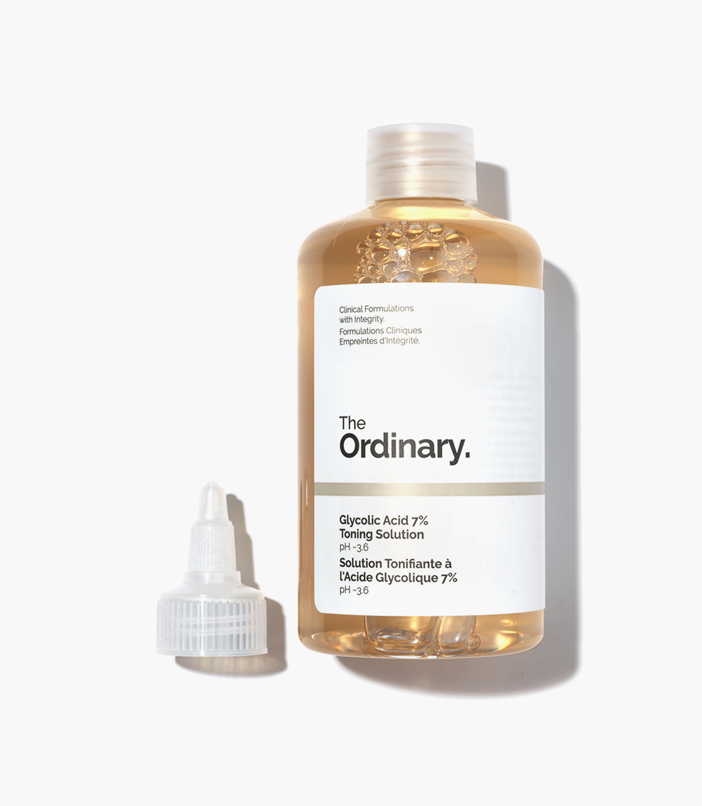 The Ordinary Glycolic 7% Toning Solution is free from silicone, alcohol and oil, and is also vegan and cruelty-free. It is not suitable for use on sensitive or compromised skin.
